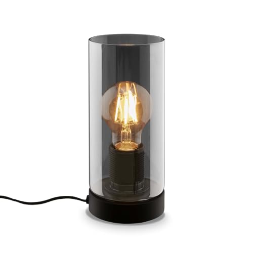 BRILONER - Lampe de chevet, verre fumé, interrupteur à fil Lampe de bureau, lampe de table E27 pour Home Office, lampe de lecture, noir
