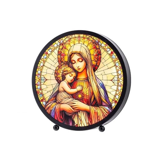 DRW Lampe en Verre Type mosaïque de la Vierge avec Enfant 25 x 15 x 25 cm