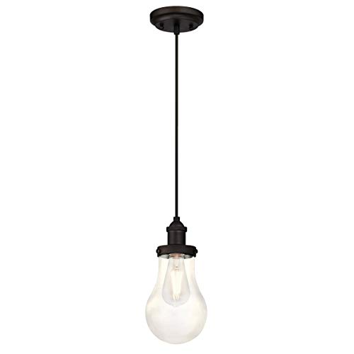 Westinghouse 6338340 63383 Luminaire Suspendu d'Intérieur à Une Lampe, Finition avec Verre en Larme Clair, Verre/,,, Bronze Huilé