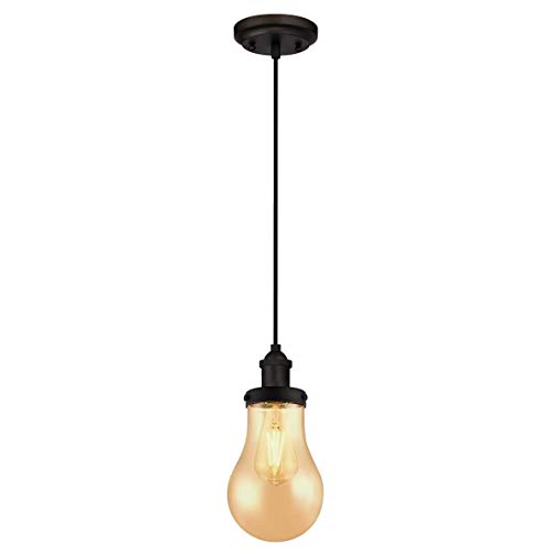 Westinghouse 6337040 63370 Luminaire Suspendu d'Intérieur à Une Lampe, Finition avec Verre en Larme Ambré, Verre/,,, Bronze Huilé
