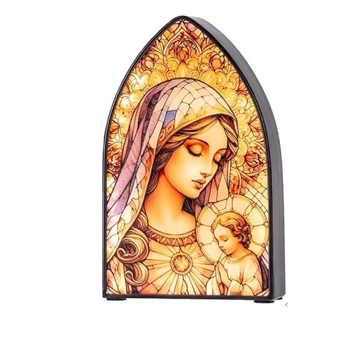 DRW Lampe en Verre Type mosaïque de la Vierge avec Enfant 13 x 4 x 21 cm