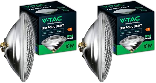 V-TAC Lampe LED pour Piscine 18W – PAR56 – Lampe en Verre Antichoc pour l'Éclairage de Piscines et Fontaines – 2000 Lumen – Lumière Subaquatique – Économie d'Énergie – IP68 – Blanc Froid (Lot de 2)
