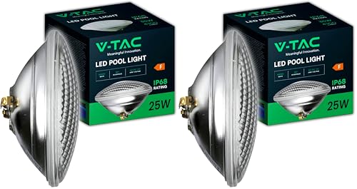 V-TAC Lampe LED pour Piscine 25W – PAR56 – Lampe en Verre Antichoc pour l'Éclairage de Piscines et Fontaines – 2850 Lumen – Lumière Subaquatique – Économie d'Énergie – IP68 – Blanc Froid (Lot de 2)