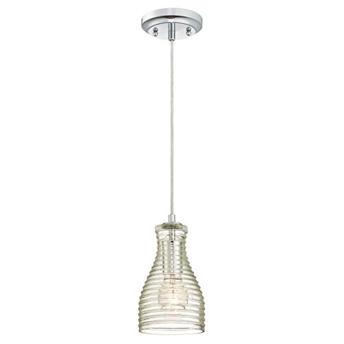 Westinghouse Lighting 6329240 63292 Luminaire Suspendu d'Intérieur à Une Lampe, Finition avec Verre Clair Ondulé, Verre/Chrome