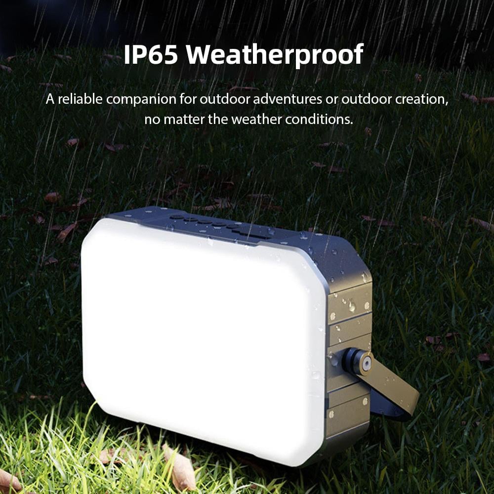 Lampe vidéo LED portable RGB Photographie Fill Light 3000K-9500K IP65 Waterproof Batterie intégrée 10000mAh Double sortie USB-A Type-C & Solar Power Charging APP Remote Control for Outdoor Vlog Video Recording Camping