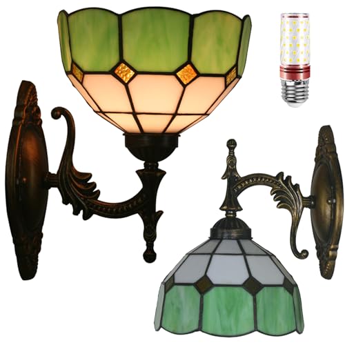 Uziqueif Appliques murales interieures, Lampe de Applique Murale de Style Tiffany, Lampe vitrail, Lampe Murale Interieur, Lampe de Chevet pour Salon,E