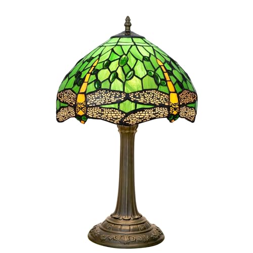 wecrejoni Tiffany Lampe Libellule Vitrail de table 30,5 x 30,5 x 45,7 cm Style Libellule verte Style Bureau Lampe de lecture Décoration à côté de la chambre à coucher Salon Maison