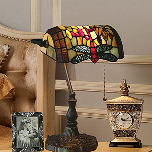 AIBOTY Tiffany Style Bankers Lampe de Table Vitrail Piano Lampe de Bureau Chambre à Coucher Lampe de Nuit à étudier,Base d'alliage Antique,Interrupteur à glissière,Dragonfly a