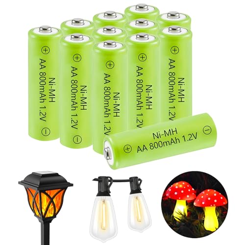 Piles Rechargeables NiMH AA 800mAh, 1,2 Volts Pile Rechargeable Double A pour Lampes Solaires Clignotantes et Appareils Ménagers (Lot de 12)