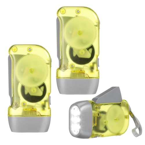JECOMPRIS Lot de 3 Lampes de Poche LED à Manivelle, sans Pile, Compactes et Légères, Lumière Rechargeable par Pression Manuelle, pour Camping, Randonnée et Urgences, Couleur Aléatoire