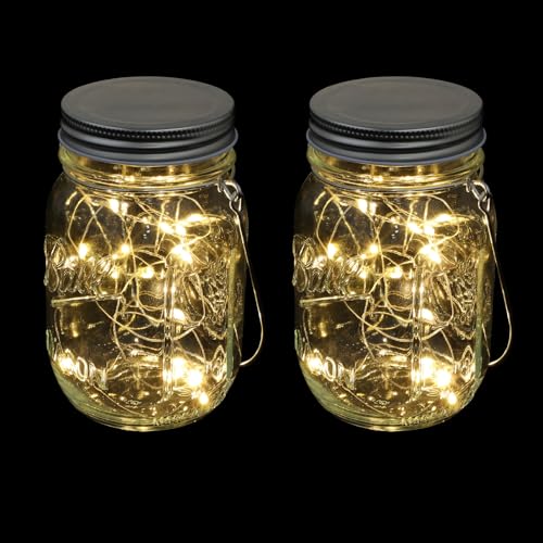 NULYLU Lampes Décoratives en Verre Lot de 2, Lumière Créative LED Blanc Chaud et Multicolore, à Suspendre pour Terrasse et Jardin Extérieur, sans Pile