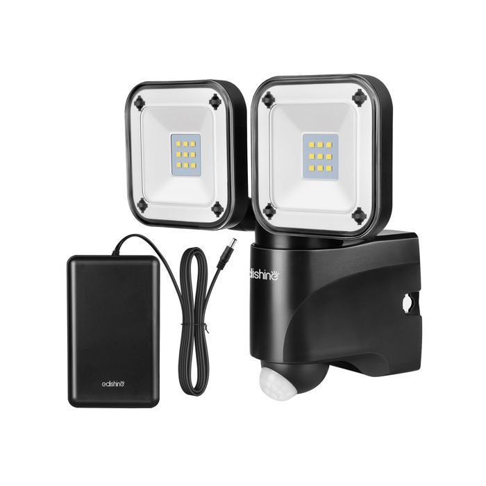 EDISHINE Projecteur LED extérieur IP44 étanche détecteur de mouvement PIR à pile 2 lampes rotatives 800LM 6000K blanc froid