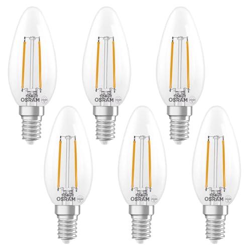Osram Lampe LED Superstar B25 à filament en forme de bougie, intensité variable, blanc chaud 2 700 K, 1,8 W, E14, transparente, 250 lm, 15 000 h, pour lustres et lampes de chevet,6-Pack