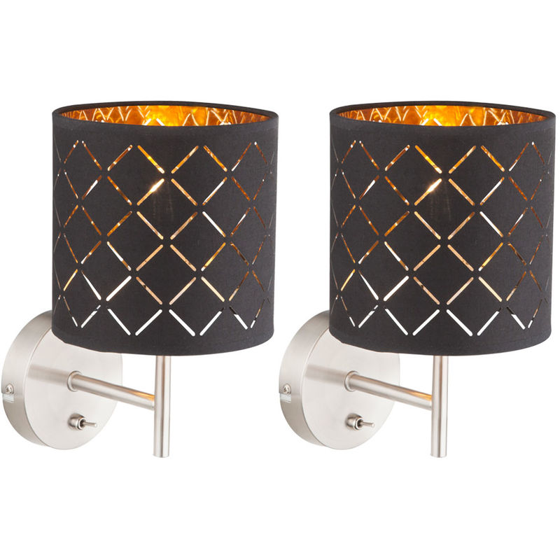Lot de 2 appliques led design lampes spots en textile or noir éclairage chambre et salon