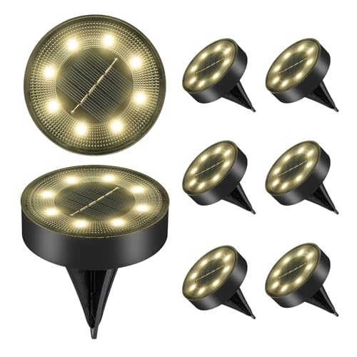 Lot de 8 Lampe Solaire Au Sol pour l'extérieur (blanc chaud), Jardin Exterieur Solaire Etanche Lumiere Solaire à 8 LED (IP68), Spot Solaire Extérieur, Lampes Solaires pour le Jardin, la Pelouse, l'all
