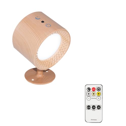 SIYANE 2 ensembles de lampes sans fil rechargeables USB, applique murale sans fil à piles, éclairage mural de ferme industrielle en bois à distance pour chambre à coucher, chevet, salon