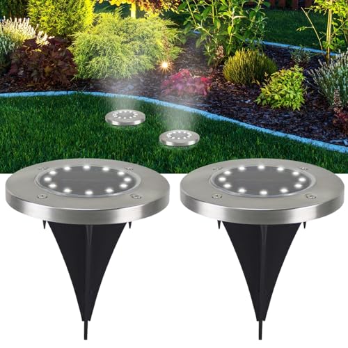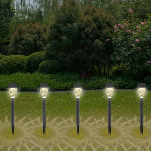 Green Haven CUQOO Lot de 10 lampes solaires de jardin à DEL étanches et rechargeables en acier inoxydable pour éclairage d'allée, lampes solaires d'extérieur pour jardin (blanc)