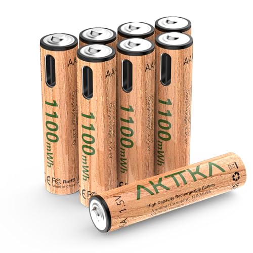 AKTTKA Piles AAA Lithium Rechargeables, Lot de 8 (1100 mWh), avec câble de Charge USB-C 4-en-1, pour télécommandes, Souris sans Fil, Lampes Torches LED, Jouets et Plus (Rouge)