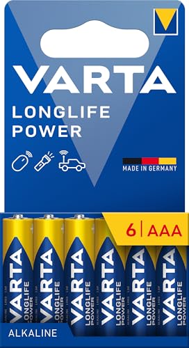VARTA Piles AAA, lot de 6, Longlife Power, Alcalines, 1,5V, emballage recyclé à 90%, adaptées aux jouets, souris sans fil, lampes de poche, Made in Germany