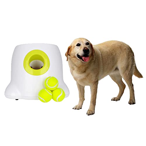 Lanceur automatique de balles pour chien – Jouet interactif pour chiens et chiots actifs | Jeu intérieur/extérieur, exercice physique et outil de dressage avec 3 balles de tennis