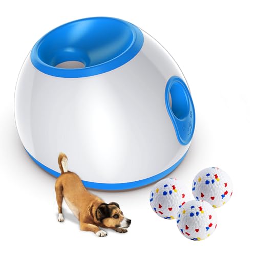 Lanceur automatique de balles pour chien avec 3 balles incluses, distances de lancement réglables 3 m, 7,6 m, 12,2 m, parfait pour les chiens de petite et moyenne taille