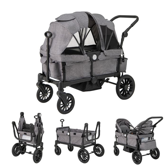 Poussette Double Légère Landau Pliable de Voyage Poussette Tandem Compacte Avec Siéges RéversiblesNaissance à 36 Mois