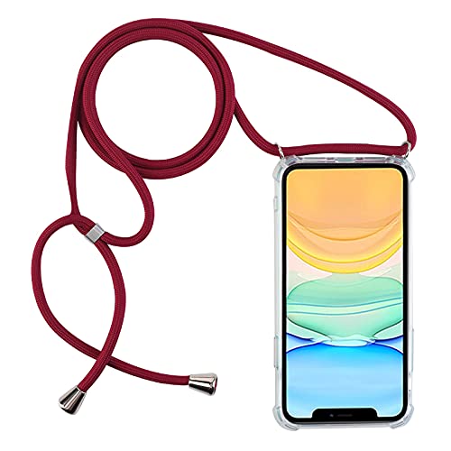 PuYu Zhe Coque pour Samsung Galaxy A32 5G avec Cordon de Collier, Coque Transparente Silicone TPU Bumper Etui Housse avec Cordon Réglable Cover Téléphone Lanière-Jujube Rouge