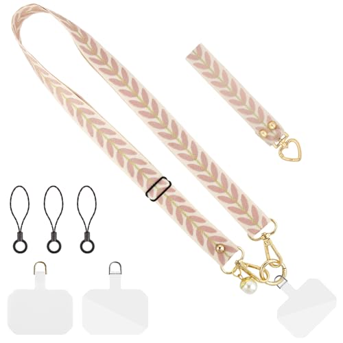 CHUQING Chaîne de téléphone universelle rose Lanière pour téléphone à suspendre Lanière transversale Lanière pour téléphone réglable Lanière de clés réglable Lanières de clés