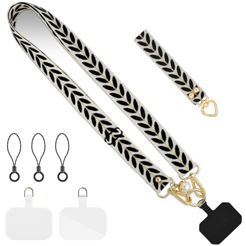 flintronic Lanière de Téléphone pour Housse, Universelle Réglable Cordon Telephone Portable, Chaîne de Téléphone Universelle Imprimé, Compatibles avec Plupart des Smartphones, Lanière Téléphone, Noir