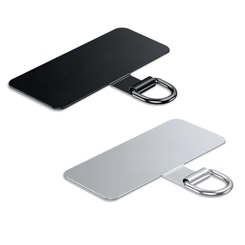 Lammcou Patch pour Lanière Téléphone, Pads en Acier Inoxydable pour Coque de Smartphone, Support Universel pour Housse & Bracelet Main Libre, Phone Tether Tab (2, Noir & Silver, 4.8 * 2cm)