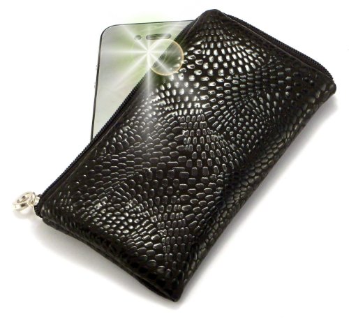 Coyote Portefeuille rembourré en Cuir avec dragonne pour Spice M-6363 Noir pailleté Pochette zippée avec lanière pour téléphone Portable