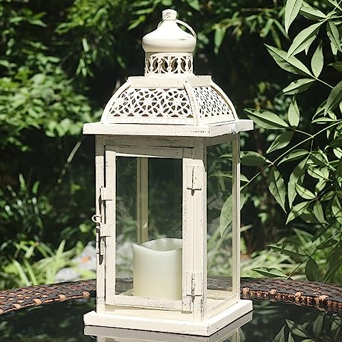 NEEDOMO Lanterne à Bougie décorative à Suspendre, Lanterne de Table Vintage en métal pour extérieur, terrasse, décoration d'intérieur Rustique, bougeoirs avec Verre Transparent (Blanc)