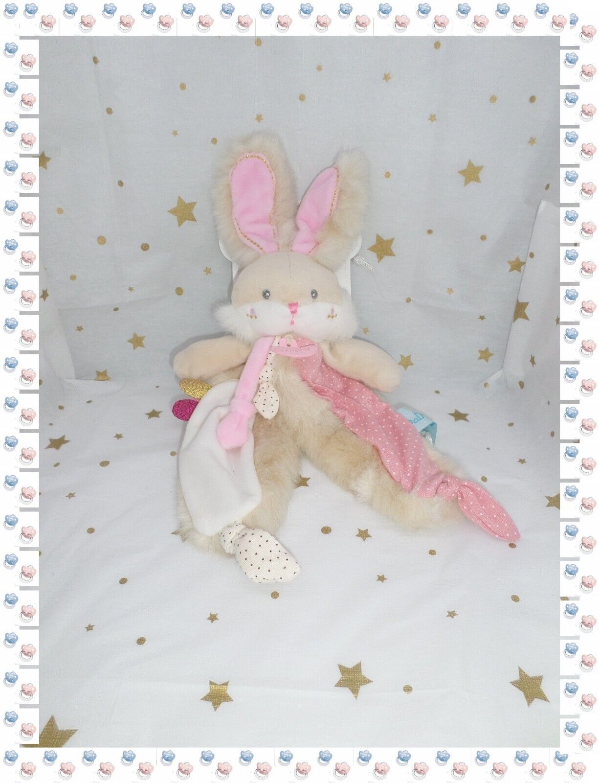 ⑲ - Doudou Peluche Lapin Papuche Rose Beige Blanc Baby Nat