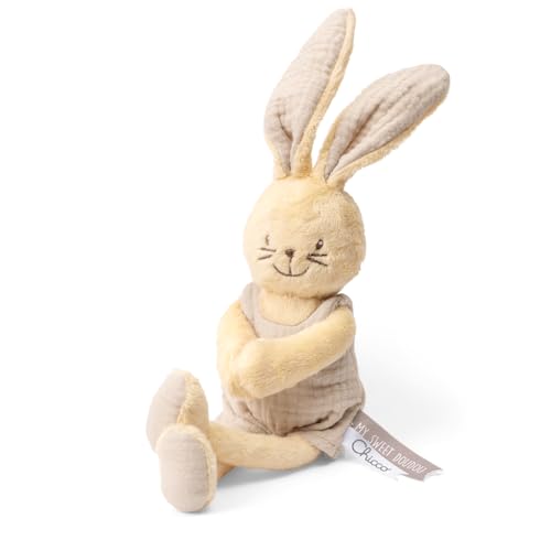 Chicco Peluche Nouveau-né en Velours Doux Lapin, Jeu Interactif avec Tintement Sensoriel et Velcro, Différentes Textures pour Le Développement Tactile, Cadeau de Naissance, 0 Mois