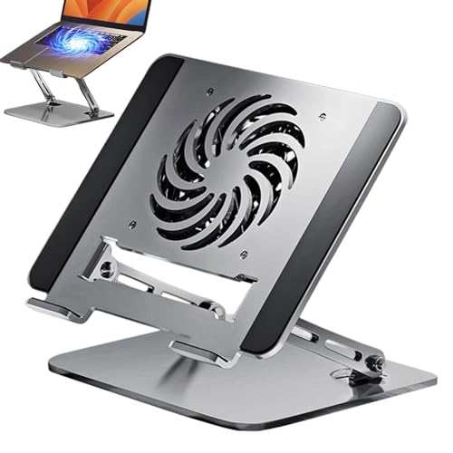 Générique Laptop Riser with Fan - Adjustable Height Metal, Ergonomic Cooling Support, Foldable Laptop Holder Stand for Tablet, Notebook, Printer, Bed, Couch, Table, Home, Travel, Working