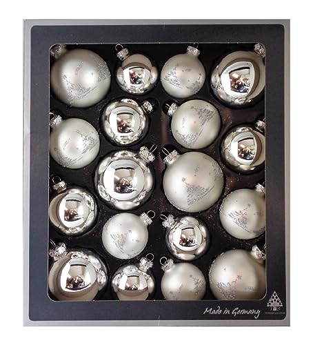 Thüringer Glasdesign - Set de boules en verre, boules de Noël avec suspension, brillantes et mates, boules de Noël, décorations pour l'arbre de Noël, décoration