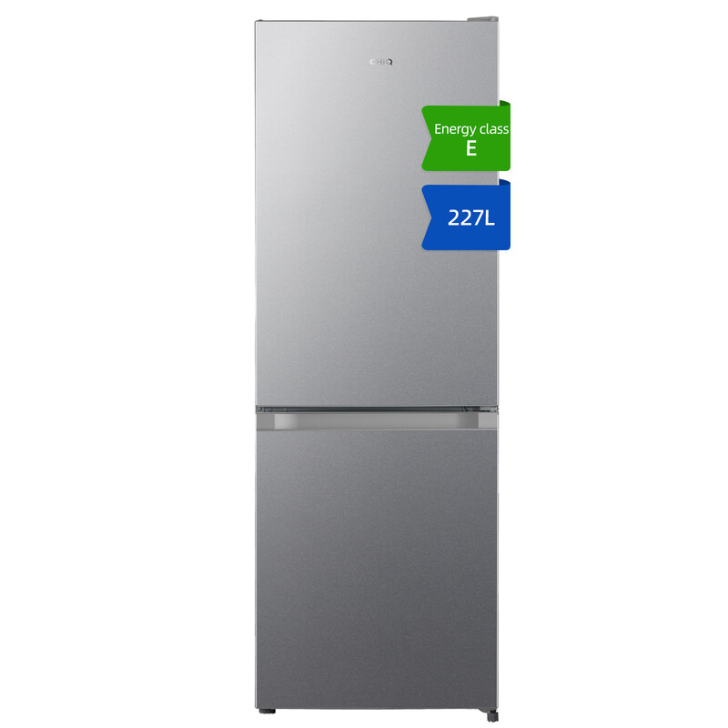 CHiQ JR227LSE Combiné réfrigérateur-congélateur, 227 L, Argent, Froid Statique, congélation 4 étoiles, 153 L réfrigérateur et 74 L congélateur, largeur - 54 cm, porte réversible, pieds réglables [Classe Énergétique E]