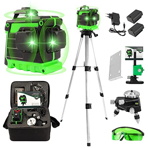 Niveau Laser Vert 3D 12 Lignes Trépied Niveau Laser 360 Autonivelant Lazer Rotatif Professionnel Étanche Comparateur de Précision avec Support pour Plafond Mur Sol Montage de Lumière