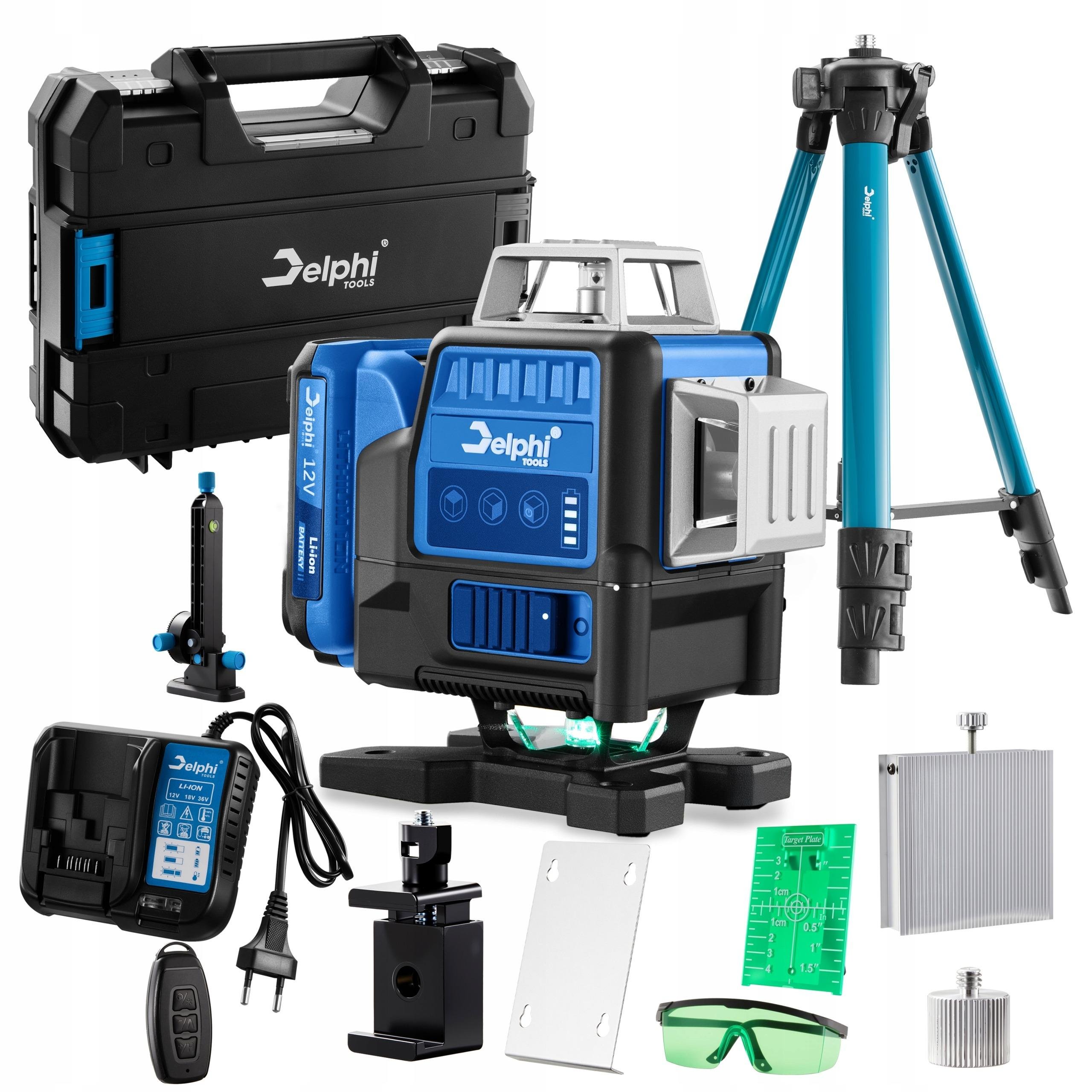 Niveau laser professionnel 4D 360°, vert, 16 lignes, avec trépied et 2 batteries