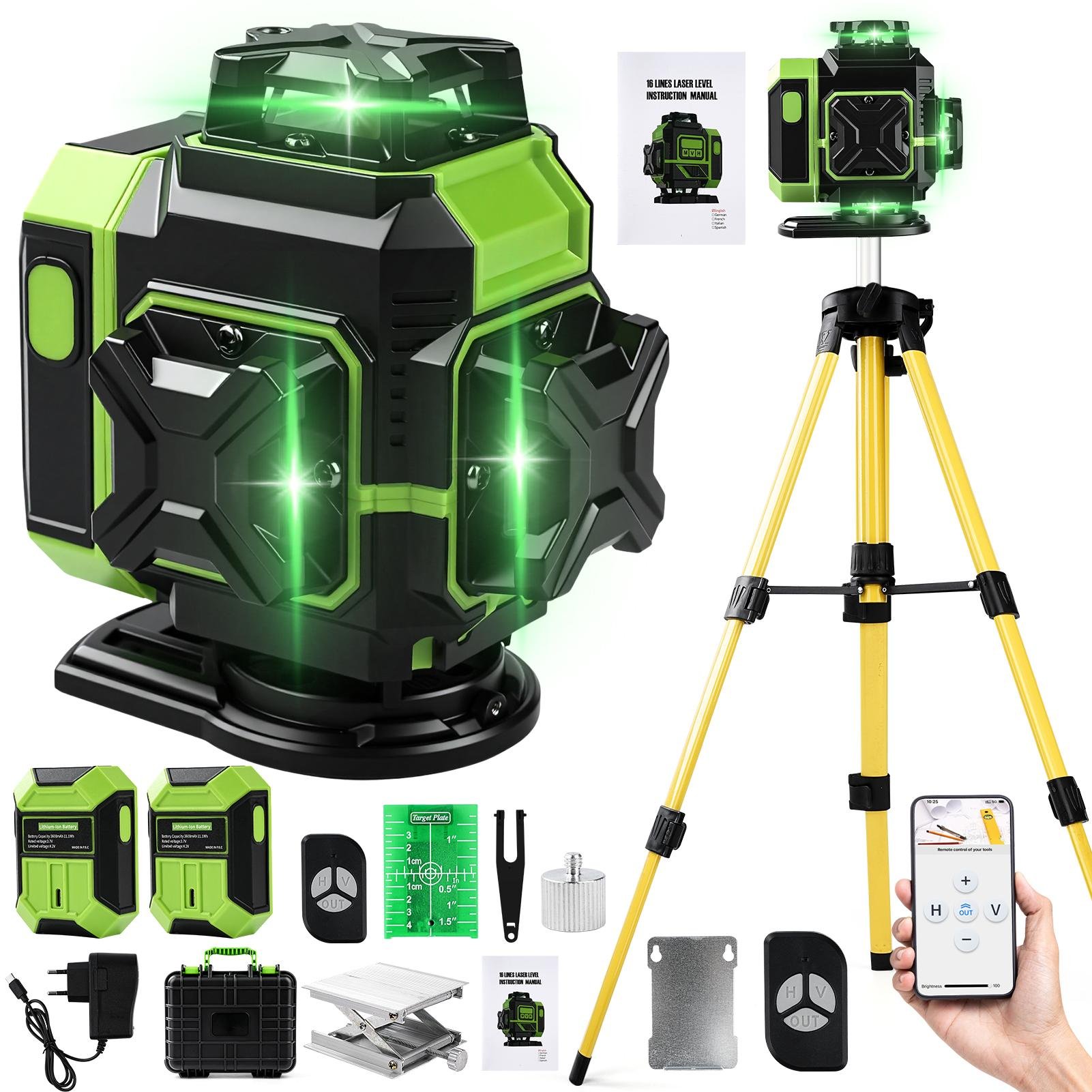niveau laser 4D 16 lignes, base pivotante à 360°, laser vert à lignes croisées,App incluse, 2x3600mAh batteries, trépied & protection IP54