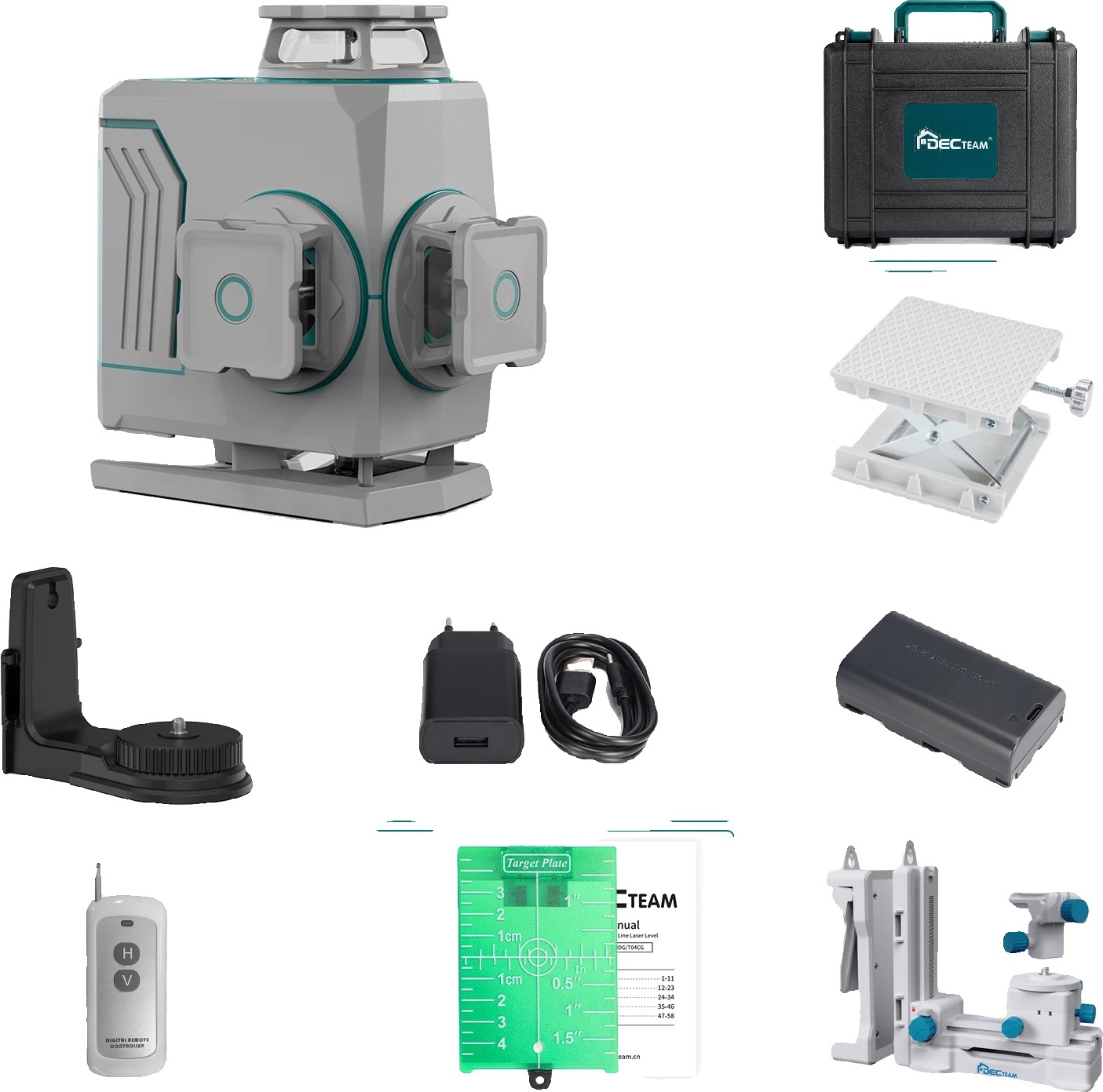 Niveau laser Decteam 4D, 4 x 360° laser vert, précision ±1/9 pouces, avec support