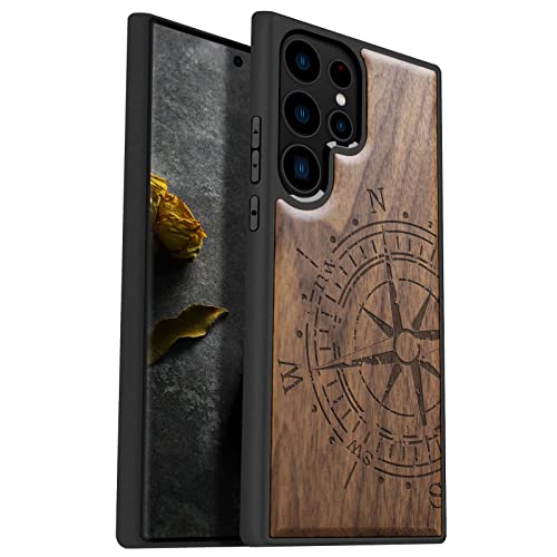 Carveit Étui pour Galaxy S23 Ultra de Coque [Gravure Laser Bois] Souple TPU Silicone Protection de Téléphone Compatible avec Samsung S23 Ultra Case (Noyer-Vieille Boussole en Lambeaux)