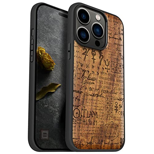 Carveit Coque magnétique pour iPhone 14 Pro Personnalisé Gravure Laser Bois Coque de téléphone Antichoc Bumper TPU Compatible Magsafe avec 14 Pro Coque Bois (Bois Sombre-Parchemin mystère)
