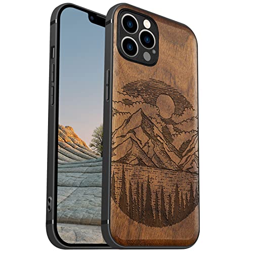 Carveit Coque magnétique pour iPhone 12 Pro [Personnalisé Noyer] [Gravure Laser Bois] Coque de téléphone Antichoc Compatible avec 12Pro Magsafe Coque Bois (Lac Alpin)