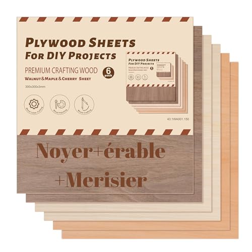 ROBOTIME Contreplaqué Noyer érable cerise 3mm Couleur 300 x300mm 6 PC Planche Bois Brut Bouleau Panneau Feuille Découpe Pyrogravure Gavure Laser Bois chaque matériau 2 pièces