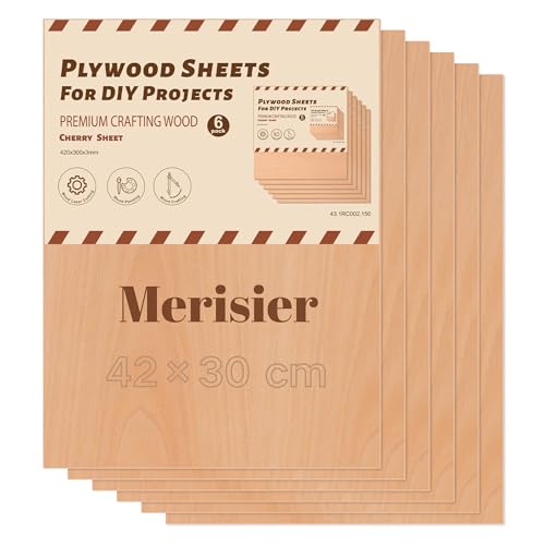 ROBOTIME Contreplaqué Merister Cerise 3mm A3 Lot de 6 Planche Bois Brut Bouleau Panneau Feuille Découpe Pyrogravure Gavure Laser Bois Rectangulaire