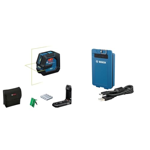 Bosch Professional laser lignes GLL 20-22 G (support de fixation LB 10, laser vert, pour utilisation en intérieur, 2 piles 1,5V LR6) + Batterie Li-ION BA 3,7 V 3,0 Ah XL (Port de Charge USB-C)
