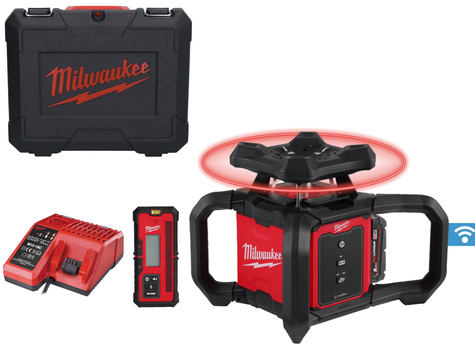 Laser rotatif 18 V M18 M18 RLOH600-201C One-Key rouge horizontale 600 m + 1 batterie 2 Ah + chargeur en coffret MILWAUKEE 4933493191