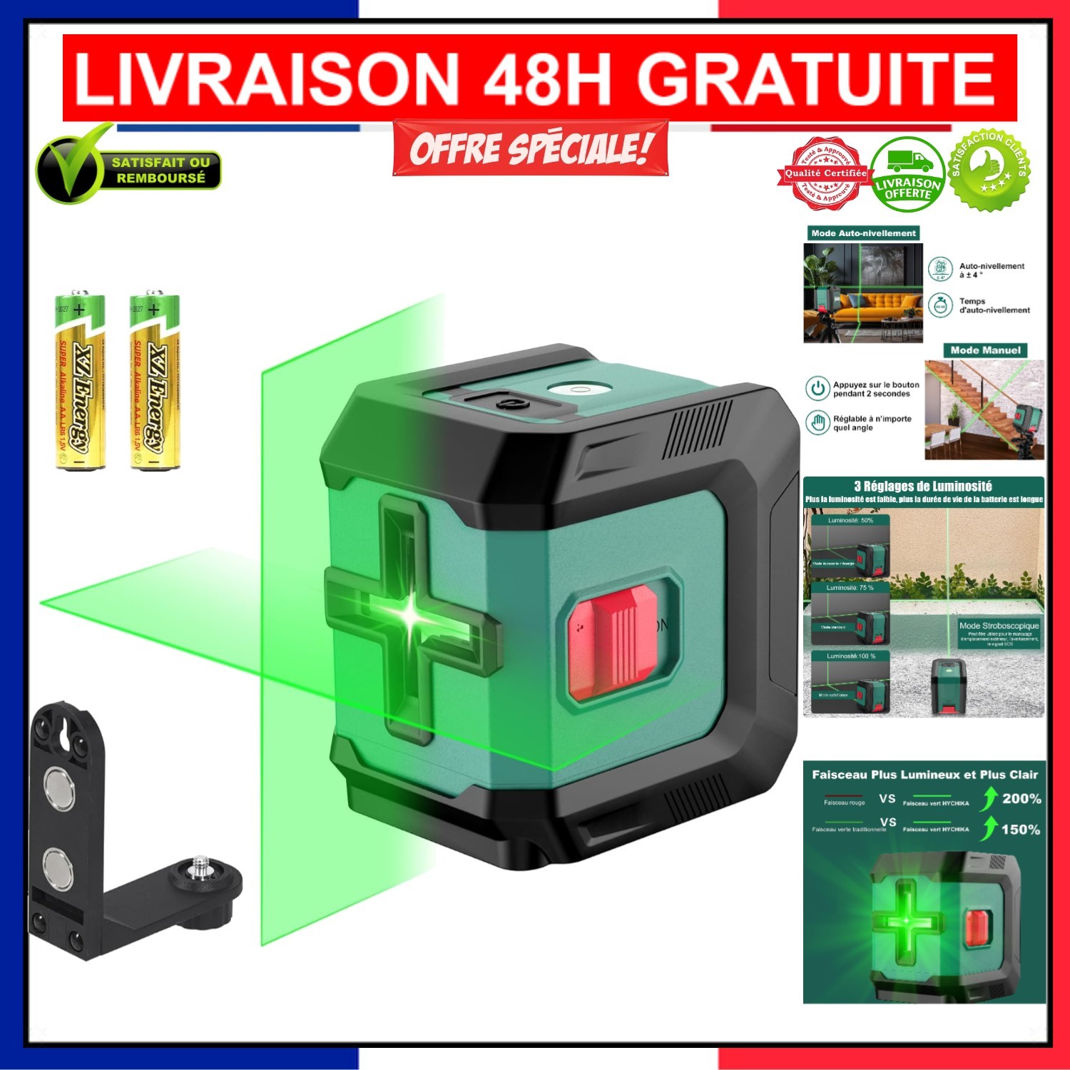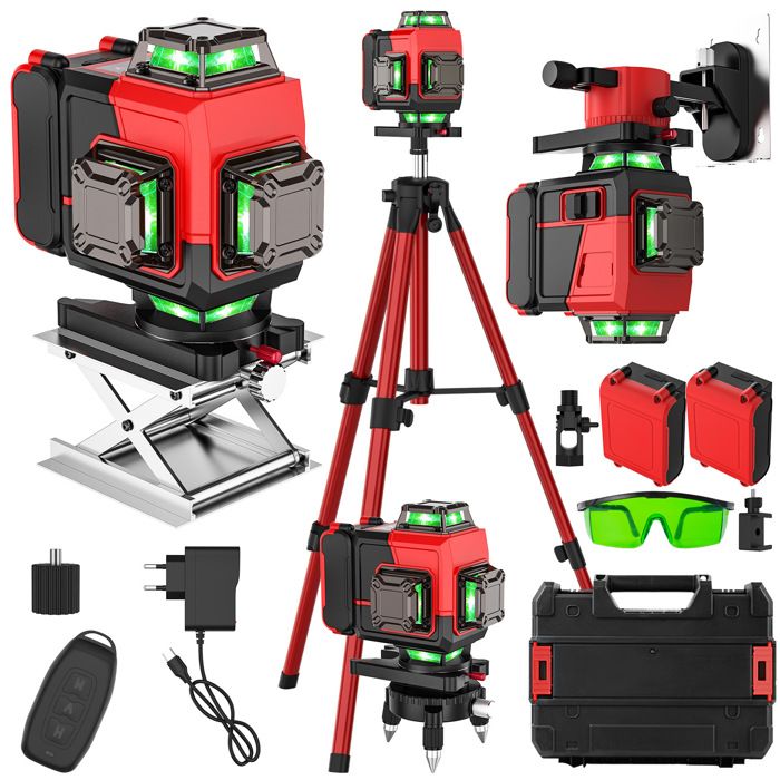 Niveau Laser 4 x 360° 16 Lignes Vert Laser Chantier Professionnel pour la Construction et lAccrochage de Photos Autonivellement