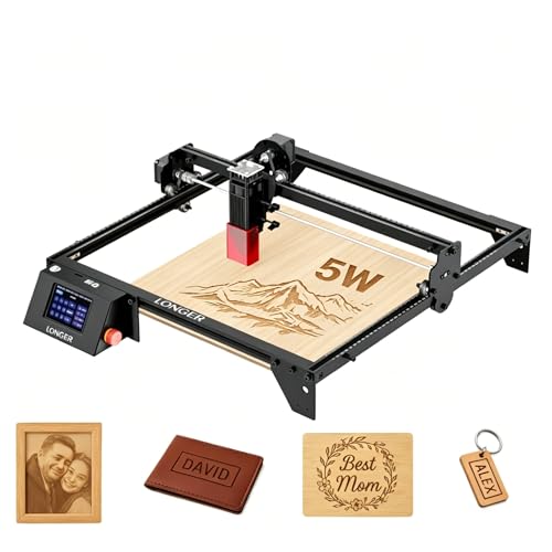 LONGER Machine de gravure laser 5 W pour débutants, gamme de gravure 400 × 400 mm, écran tactile couleur 3,5", contrôle par application hors ligne, gravure en métal/verre/bois, idéale pour les petites